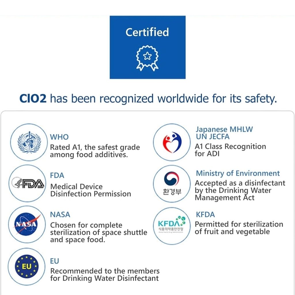 Safe levels of chlorine dioxide make it non-toxic and eco-friendly.