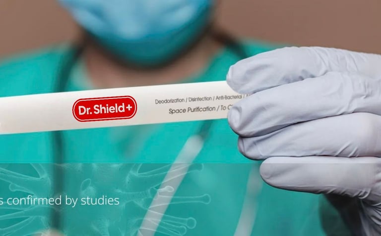 Protect your clinic, office, or home with Dr. Shield+ — a chlorine dioxide-based disinfectant proven to eliminate viruses, bacteria, and odors for up to 4 weeks after a single use.